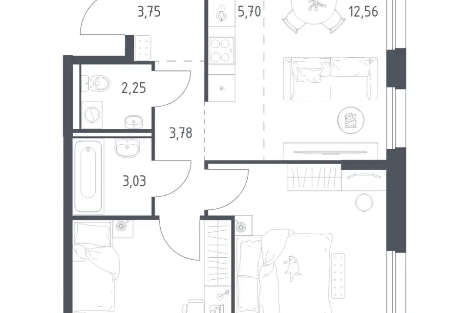 2-комн. кв., от 47.8 м², 2-17 этажи