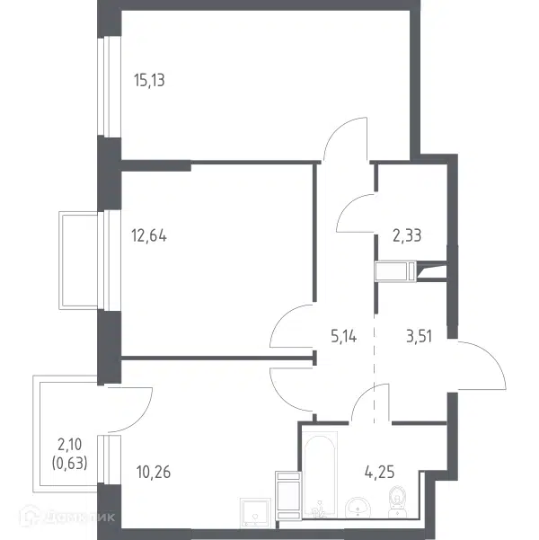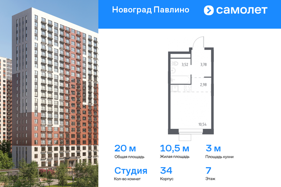1-комн. кв., от 33.79 м², 2-14 этажи