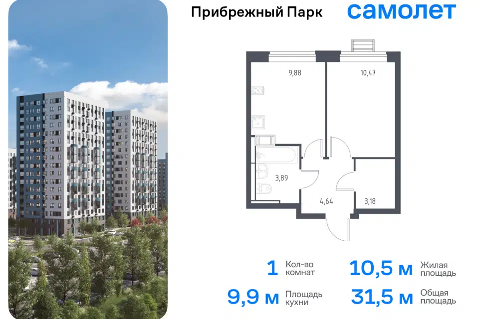 1-комн. кв., от 34.56 м², 3-11 этажи
