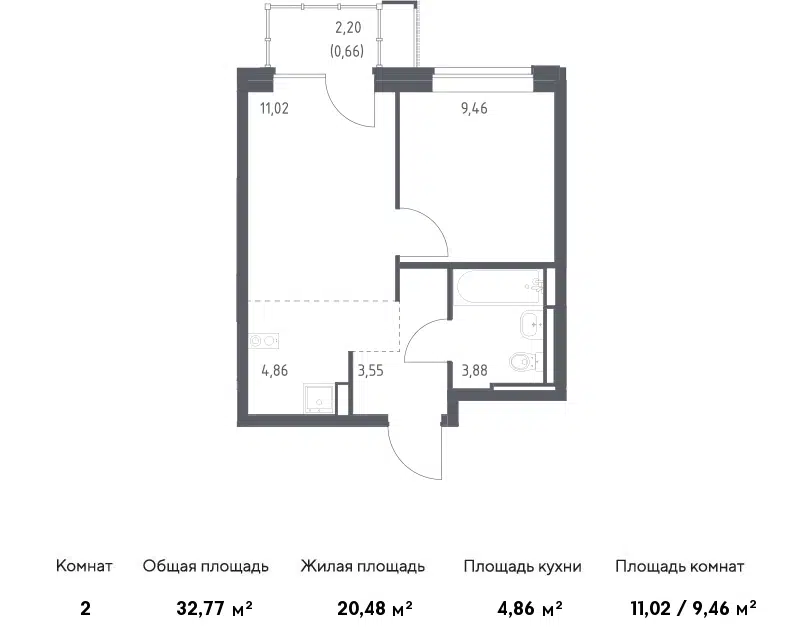 1-комн. кв., от 32.87 м², 2-11 этажи