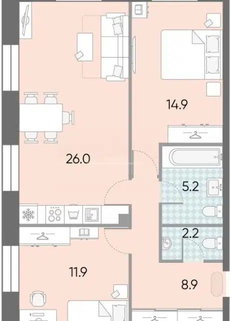 2-комн. кв., от 46.73 м², 3/22 этаж