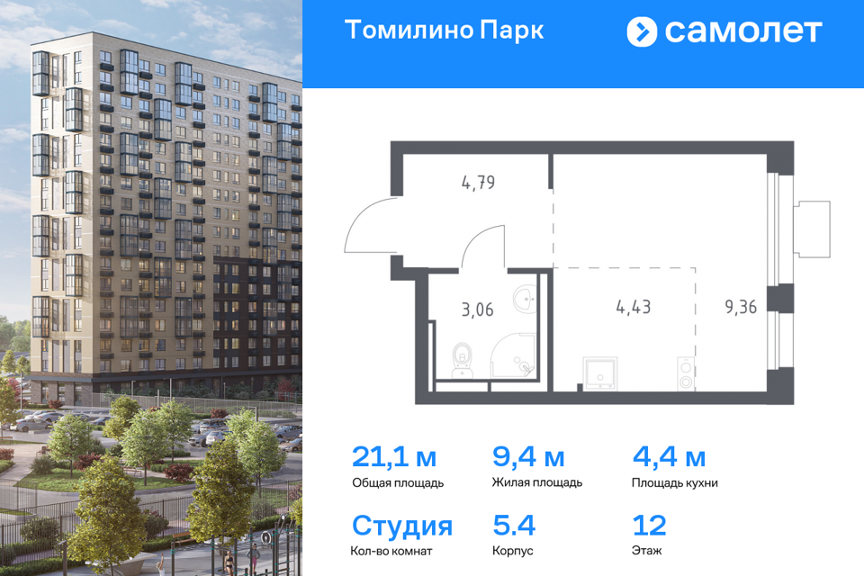 1-комн. кв., от 40.8 м², 5/5 этаж