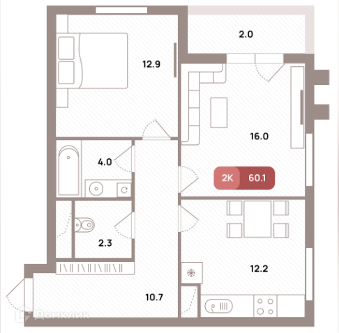 2-комн. кв., 60.8 м², 7/32 этаж