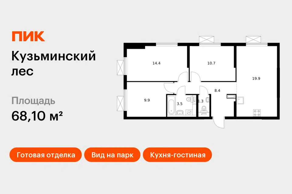 3-комн. кв., от 68.1 м², 7-20 этажи