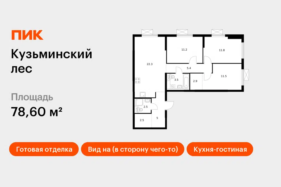 3-комн. кв., от 77.9 м², 13-25 этажи