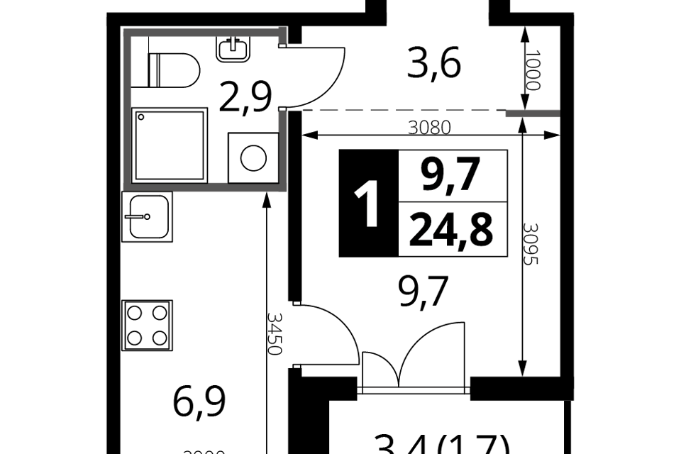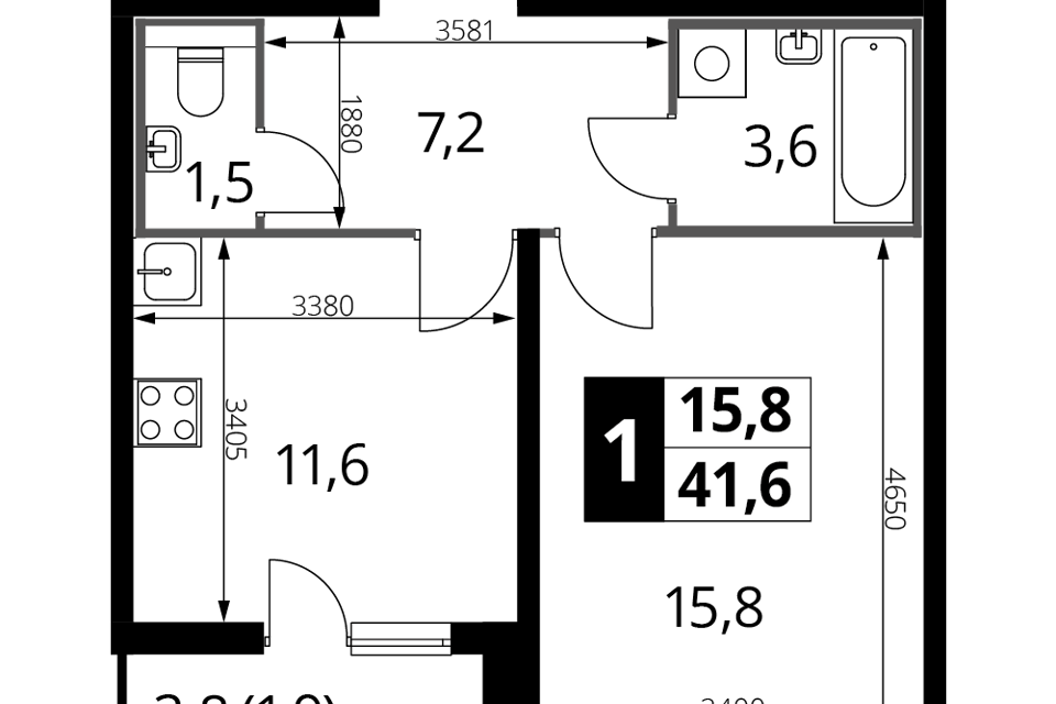 1-комн. кв., от 39.2 м², 20-25 этажи