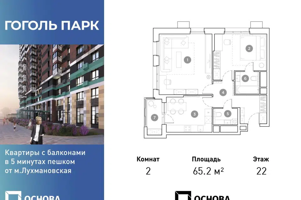 2-комн. кв., от 64.9 м², 20-24 этажи