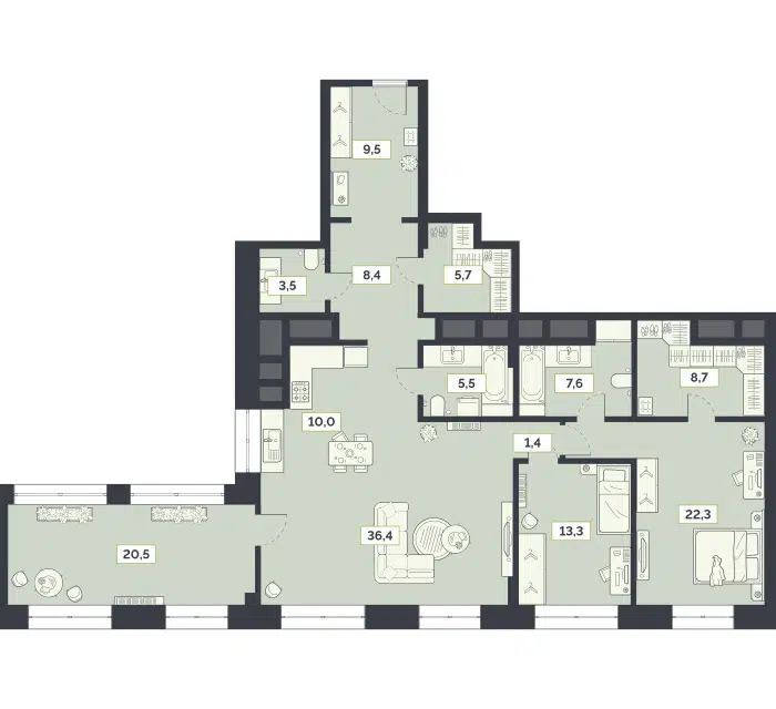 3-комн. кв., от 87.5 м², 2-27 этажи