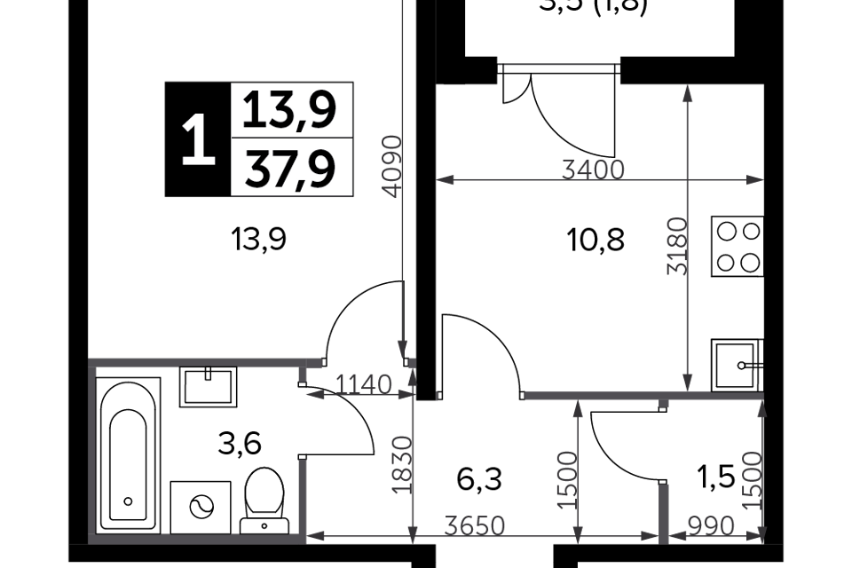 1-комн. кв., 35.9 м², 4/18 этаж