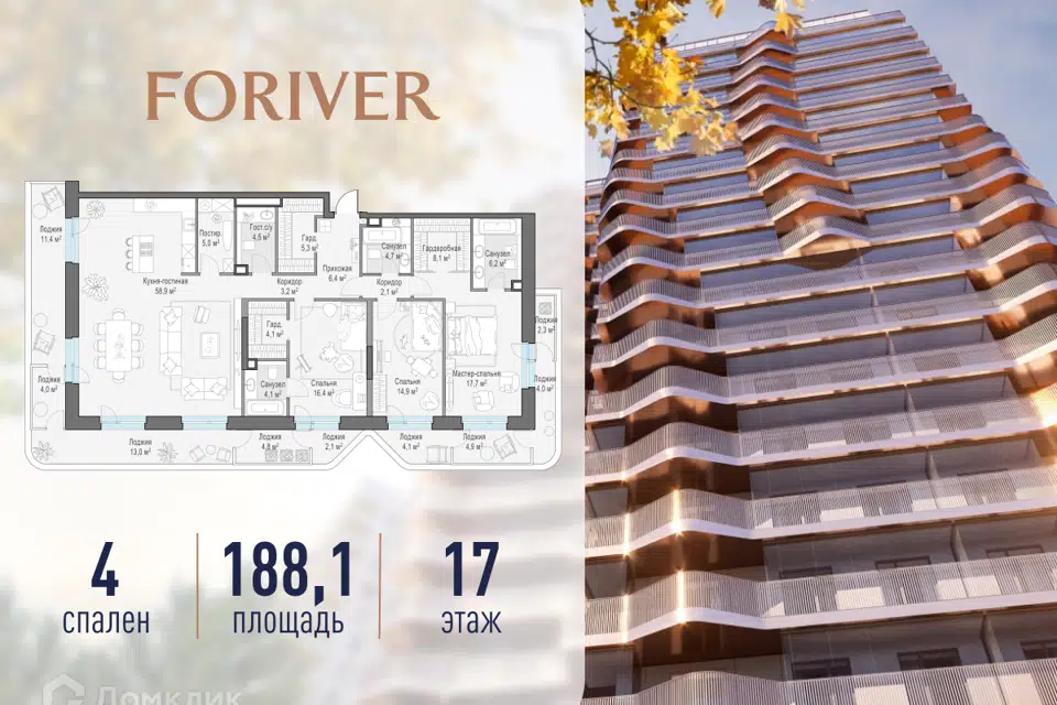 4-комн. кв., от 135.2 м², 13-18 этажи