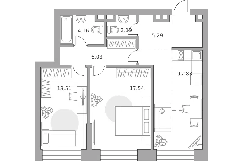 2-комн. кв., от 60.6 м², 2-19 этажи