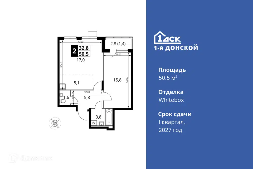 1-комн. кв., от 31.9 м², 4-16 этажи