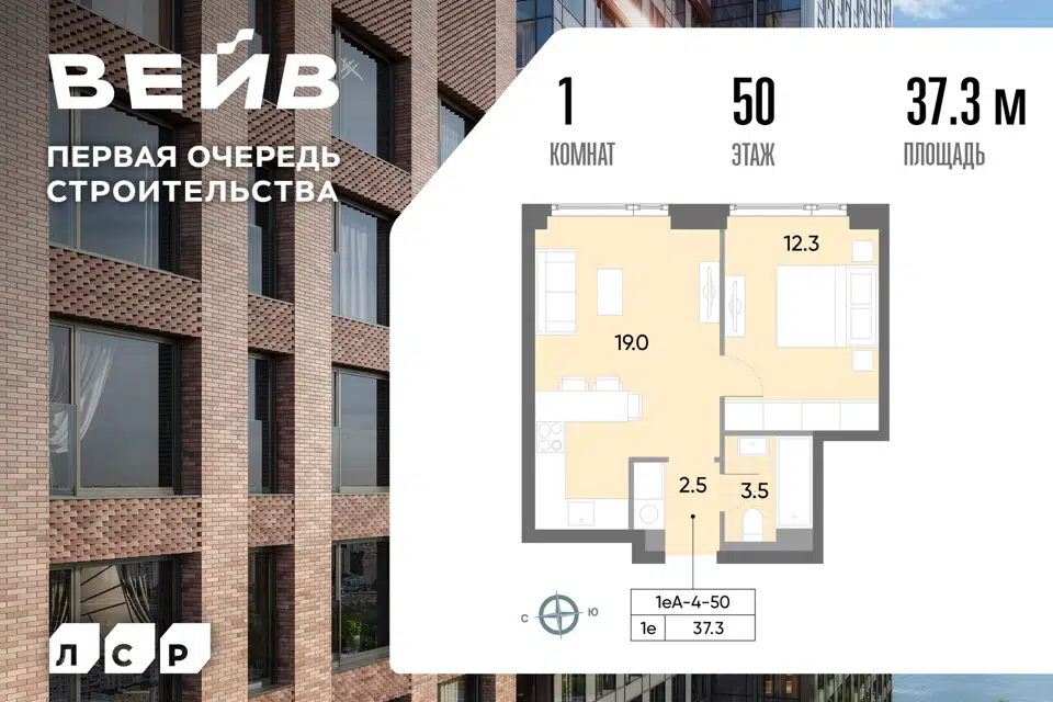 1-комн. кв., от 32.9 м², 22-50 этажи