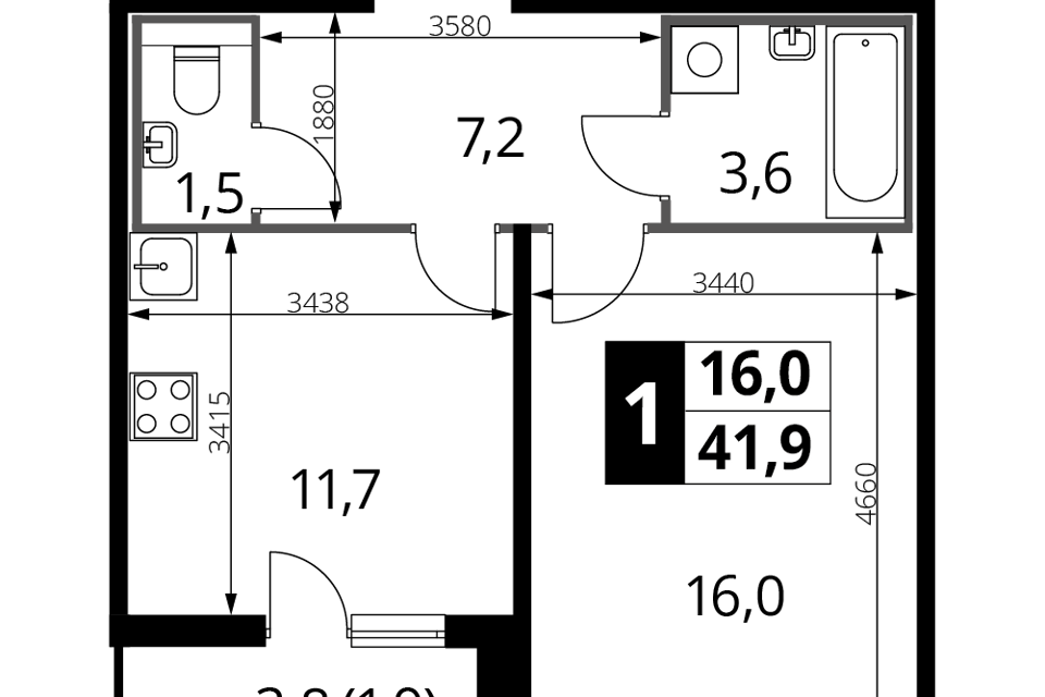 1-комн. кв., от 39.7 м², 2-3 этажи