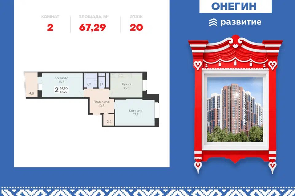 2-комн. кв., от 52.1 м², 2-13 этажи