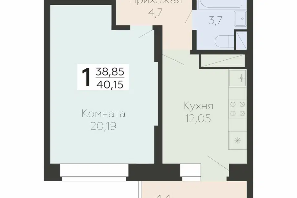 1-комн. кв., от 36.6 м², 2-12 этажи