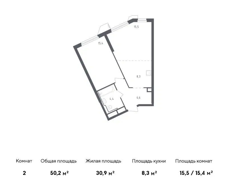 1-комн. кв., 50.2 м², 2/32 этаж