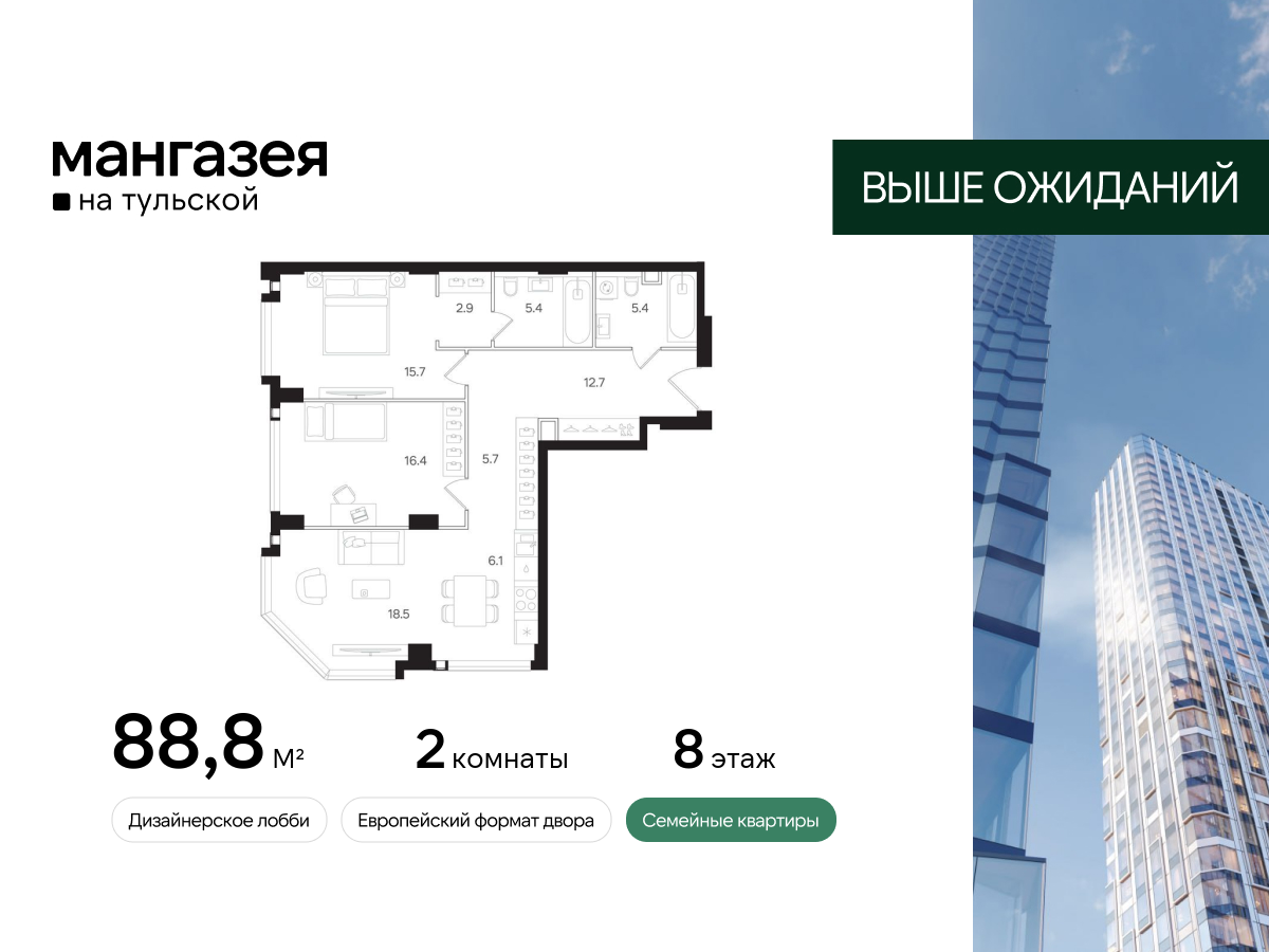 2-комн. кв., от 60.6 м², 2-19 этажи