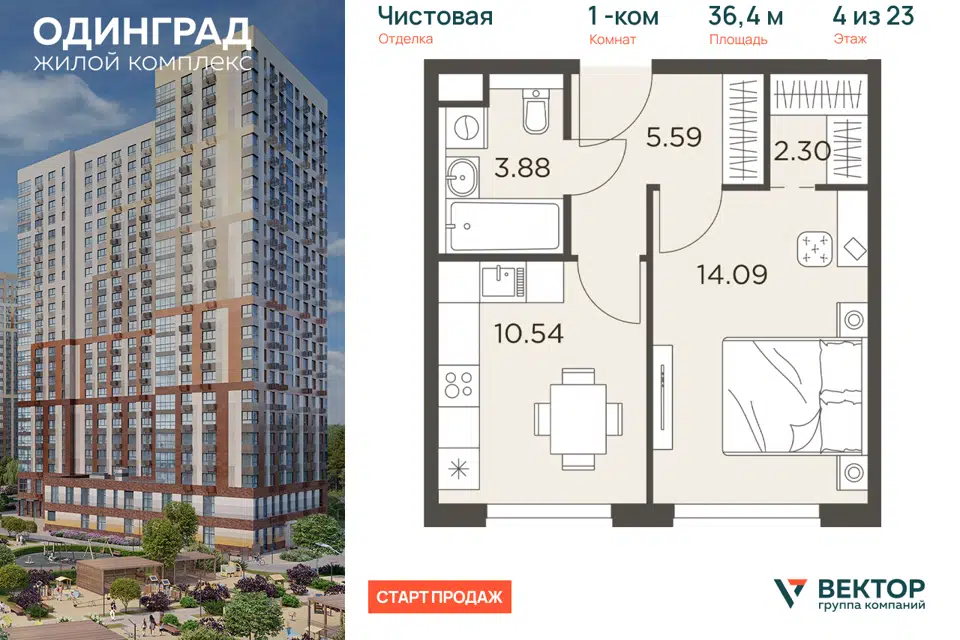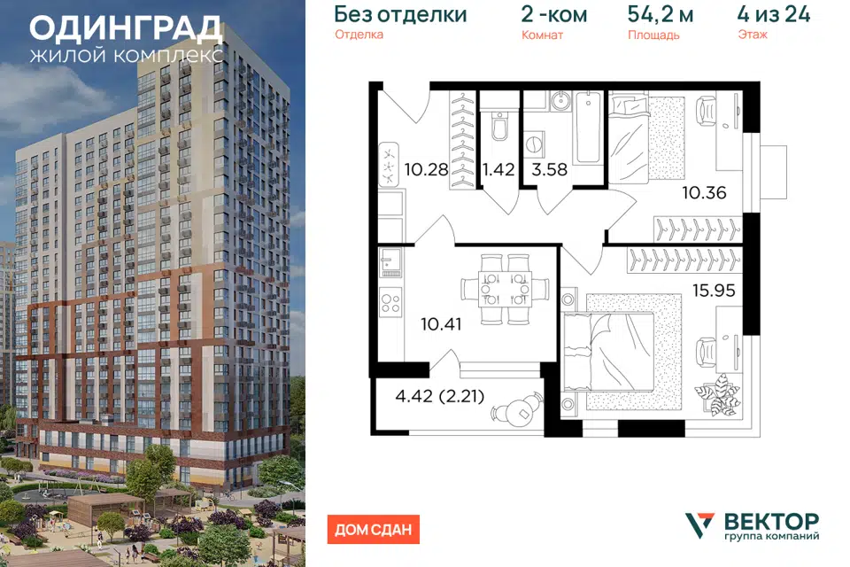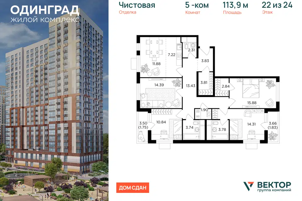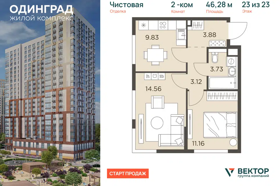 2-комн. кв., от 82.1 м², 11-13 этажи