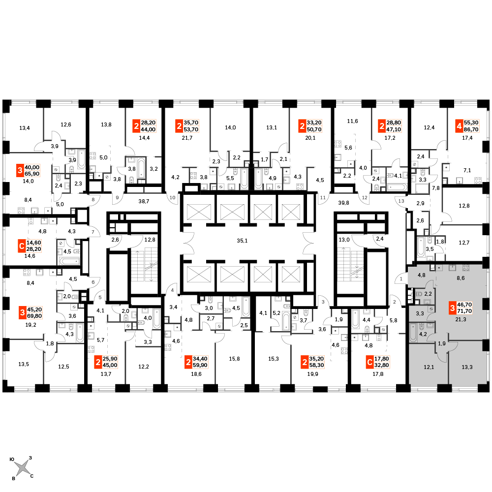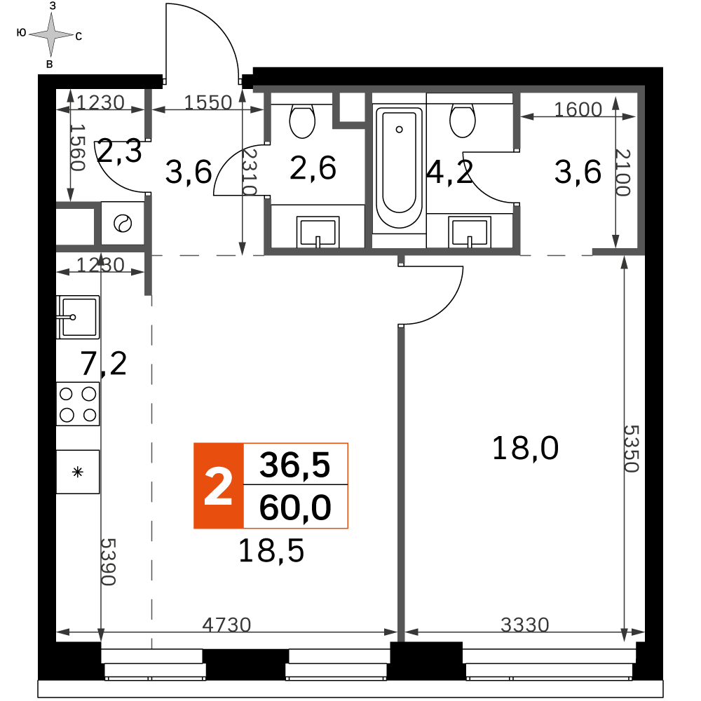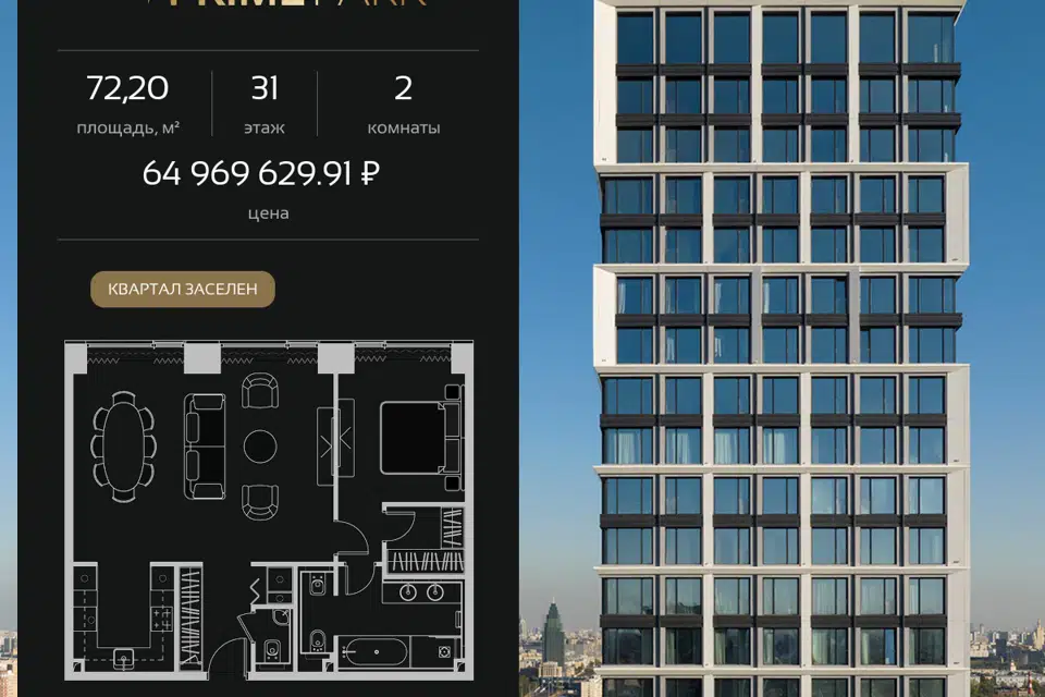 2-комн. кв., 72.2 м², 31/41 этаж