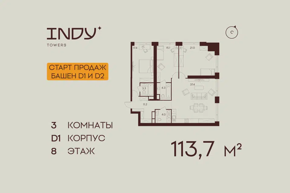 3-комн. кв., 115 м², 26/32 этаж