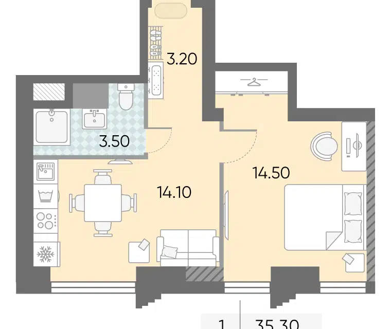 1-комн. кв., 42 м², 35/46 этаж