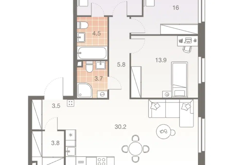 4-комн. кв., 95.2 м², 2/34 этаж