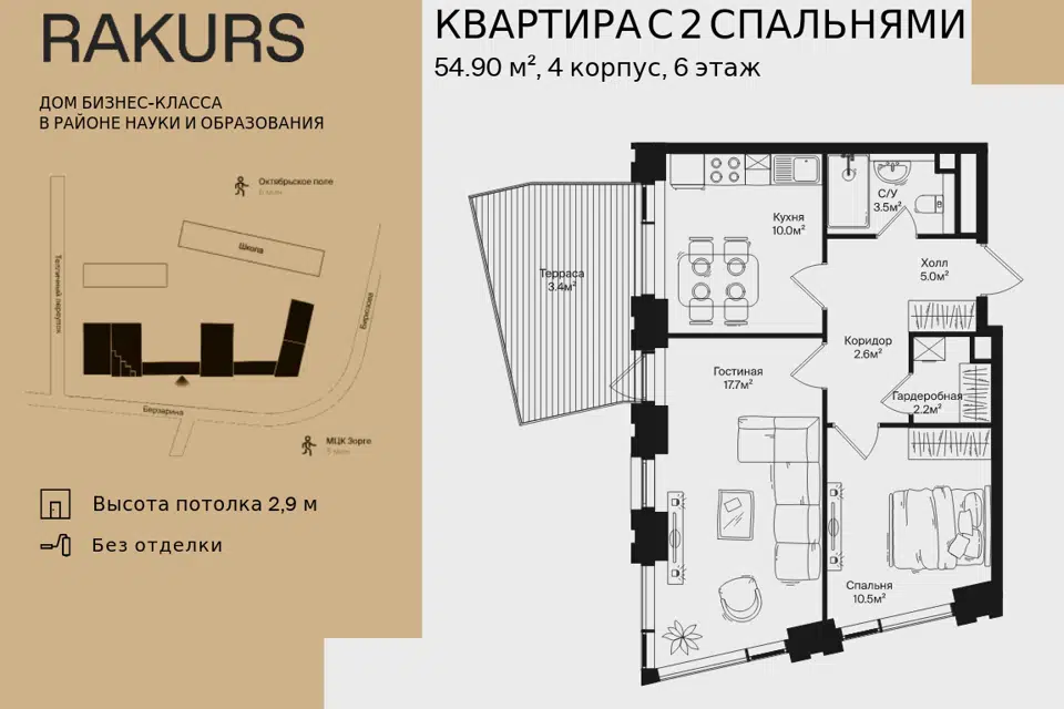 2-комн. кв., 54.9 м², 6/46 этаж