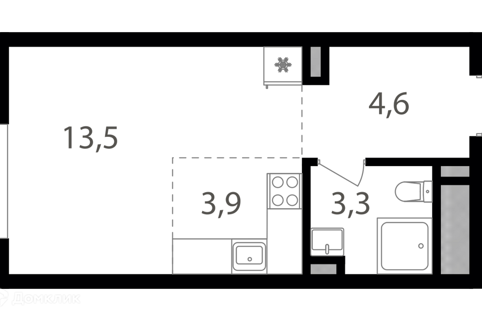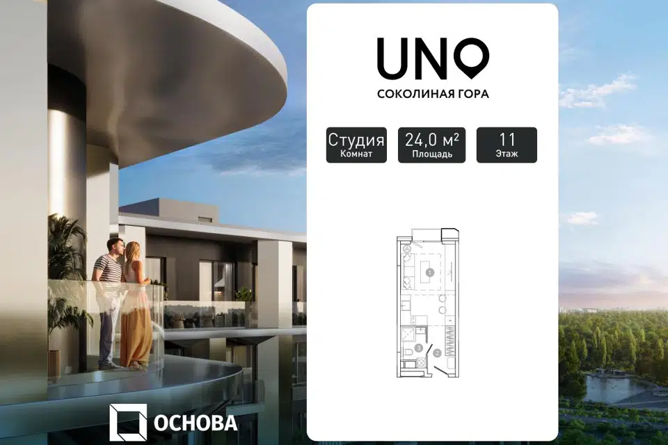 Студия, 24 м², 12/21 этаж