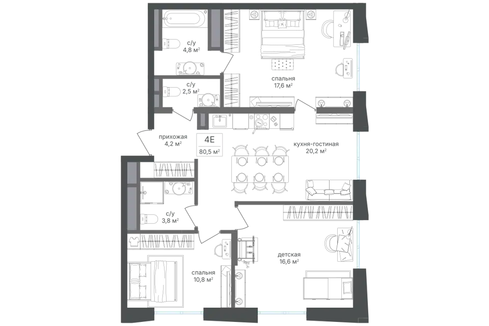 3-комн. кв., от 79.9 м², 5-16 этажи