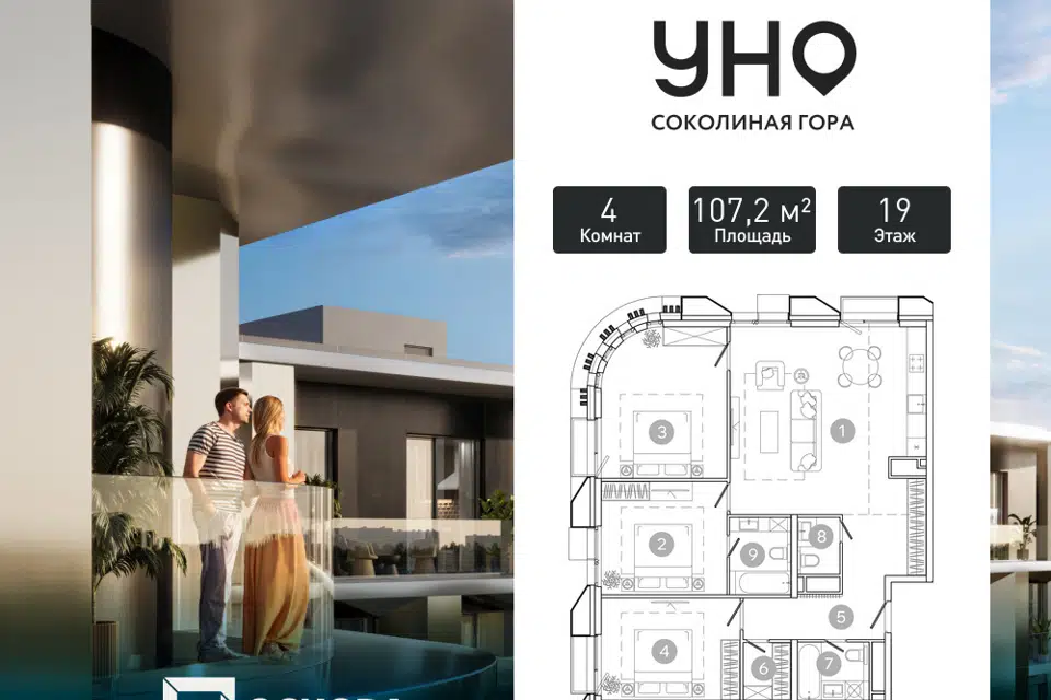 4-комн. кв., 107.2 м², 19/21 этаж