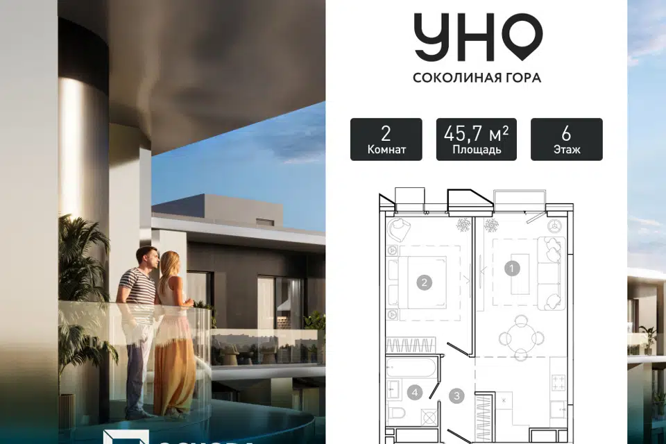 1-комн. кв., от 37.6 м², 3-26 этажи