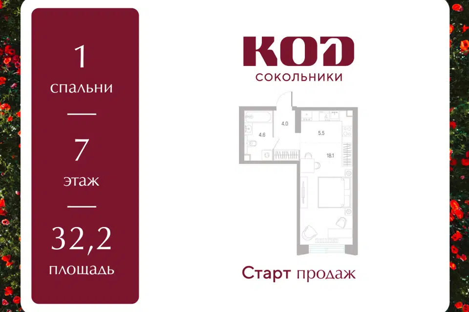 1-комн. кв., от 32.8 м², 3-32 этажи