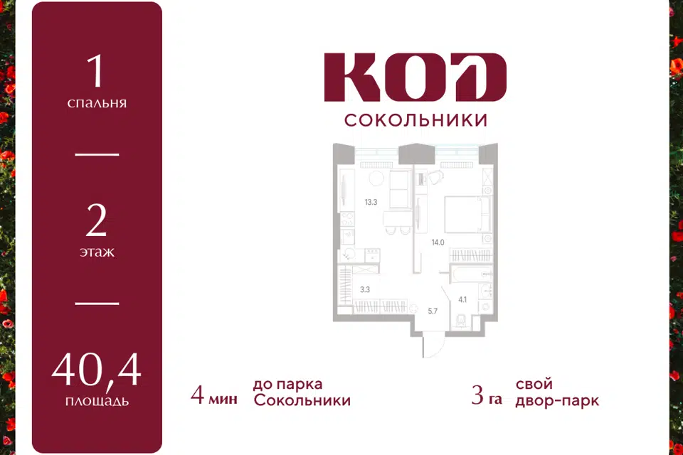 1-комн. кв., от 40.13 м², 19-35 этажи