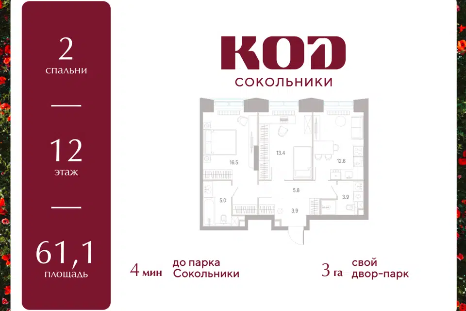 3-комн. кв., от 65.8 м², 2-32 этажи