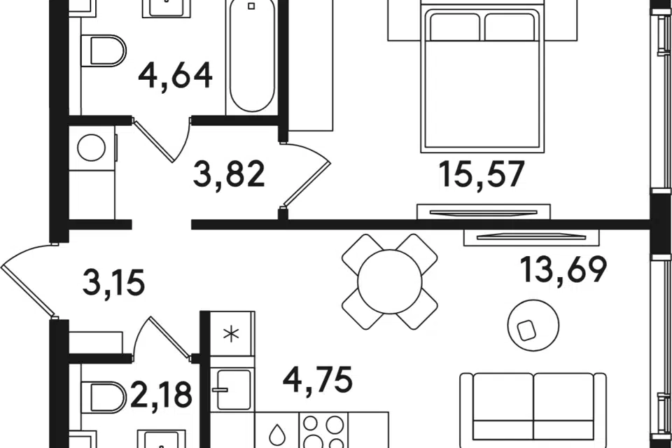 2-комн. кв., от 49.1 м², 2-32 этажи