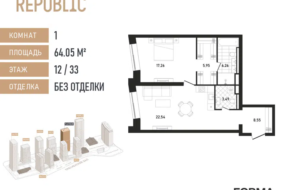 1-комн. кв., от 64.05 м², 11-16 этажи