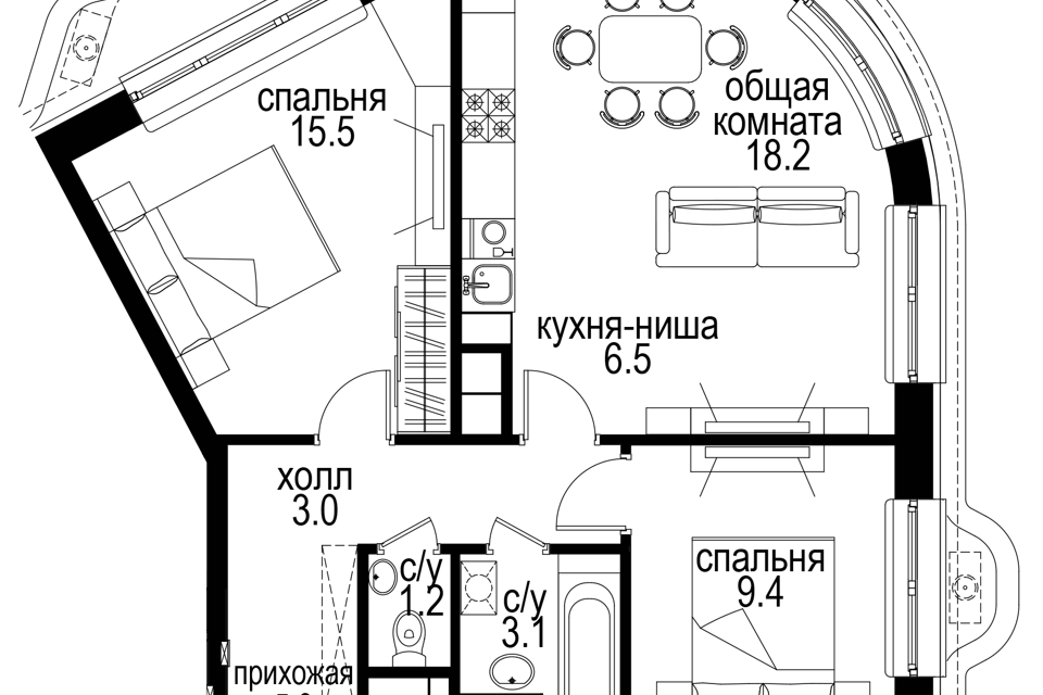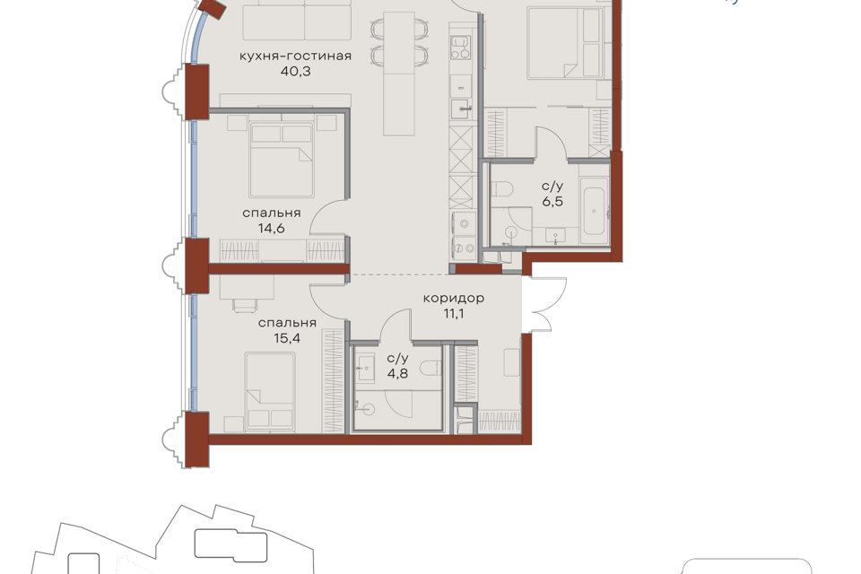 3-комн. кв., от 109.8 м², 2-21 этажи