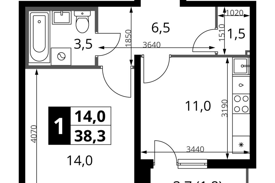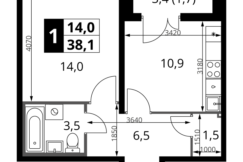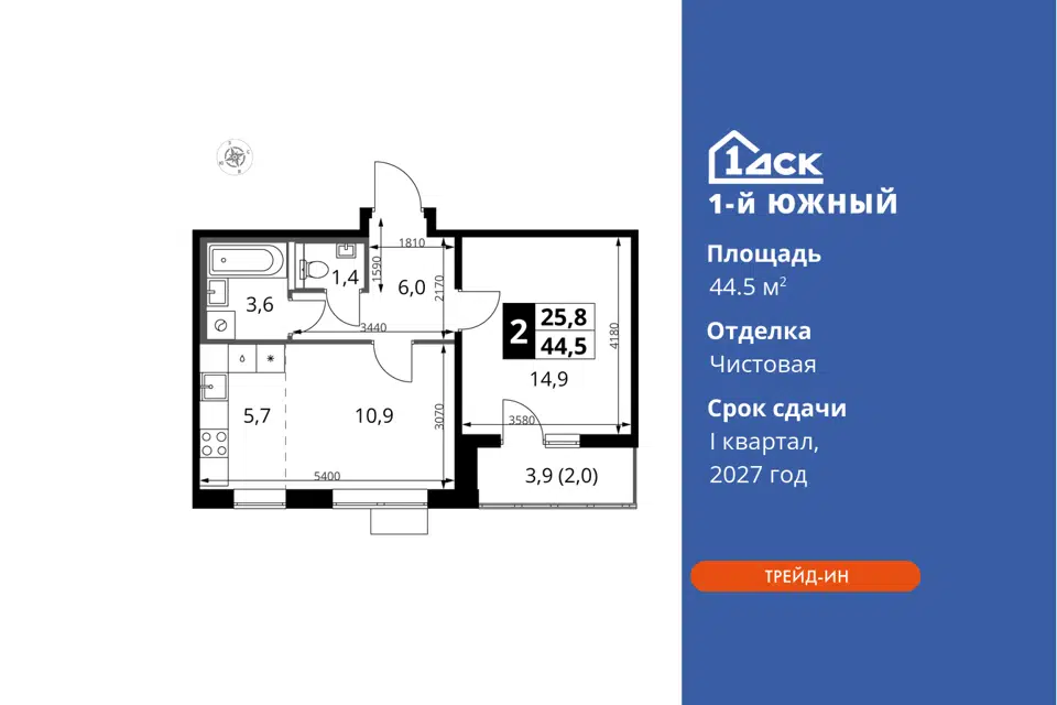 1-комн. кв., от 40.9 м², 1/4 этаж