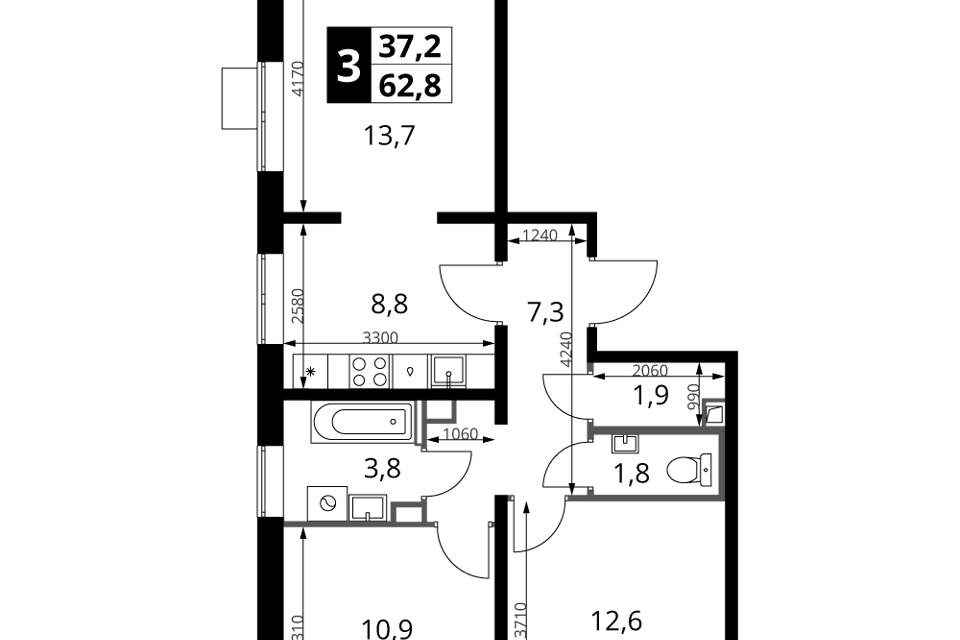 3-комн. кв., от 62.5 м², 2-25 этажи