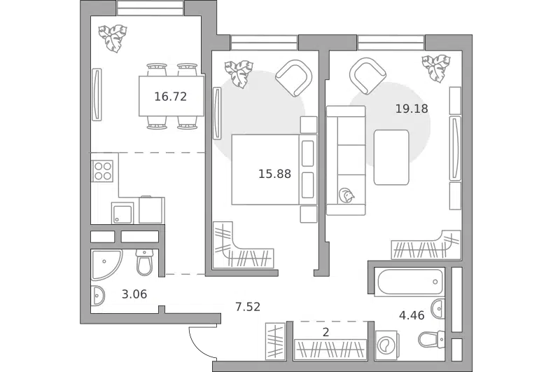 2-комн. кв., от 47 м², 2-19 этажи