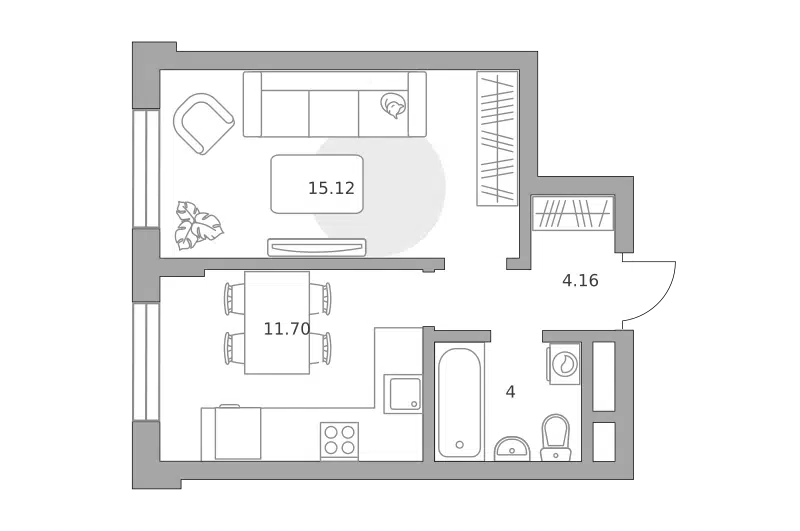 1-комн. кв., от 33 м², 12-20 этажи