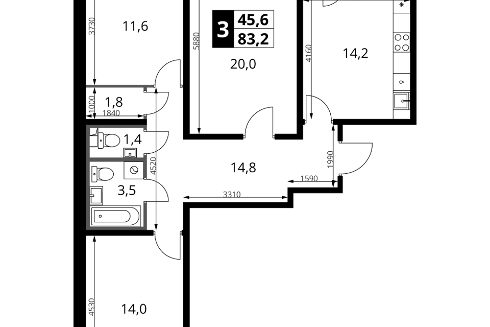 3-комн. кв., от 73 м², 4-11 этажи