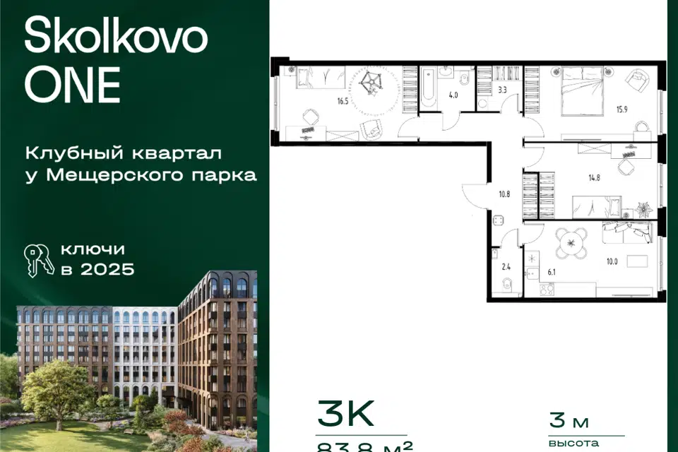 3-комн. кв., от 83.7 м², 3-9 этажи
