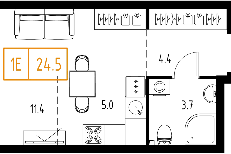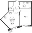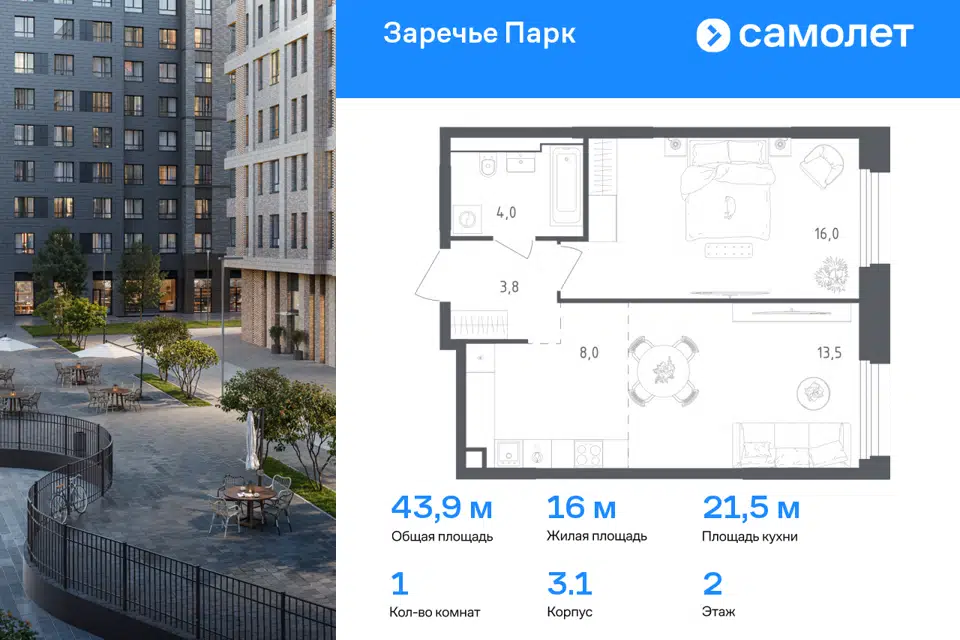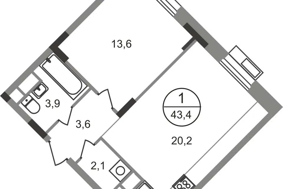 1-комн. кв., от 43.9 м², 2-8 этажи