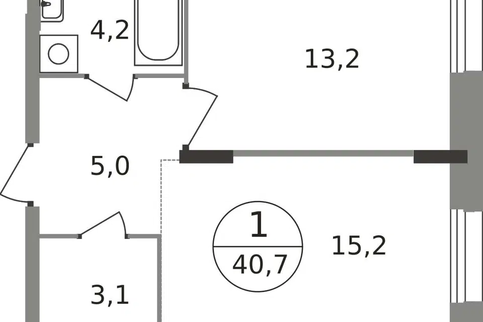 1-комн. кв., от 40.7 м², 1-8 этажи