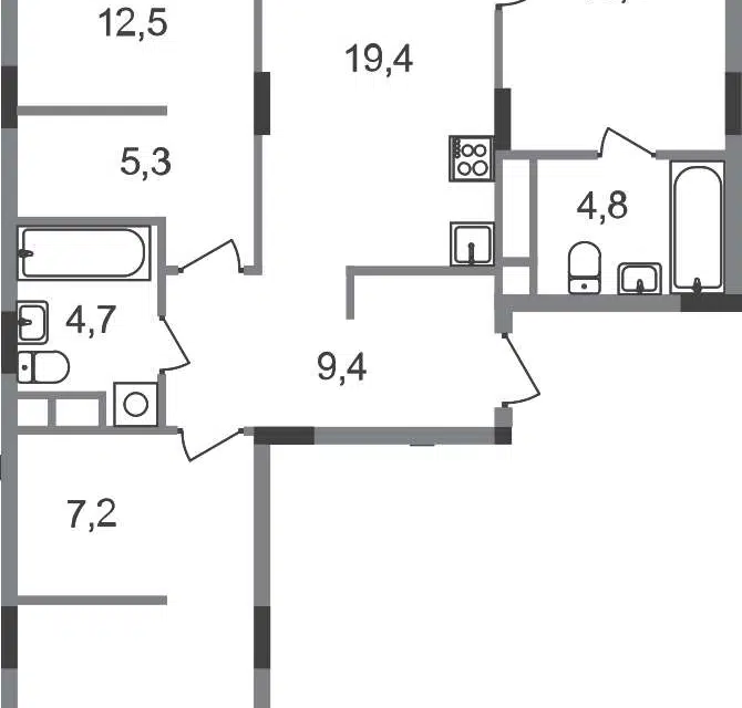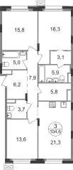 3-комн. кв., от 79.1 м², 3-7 этажи