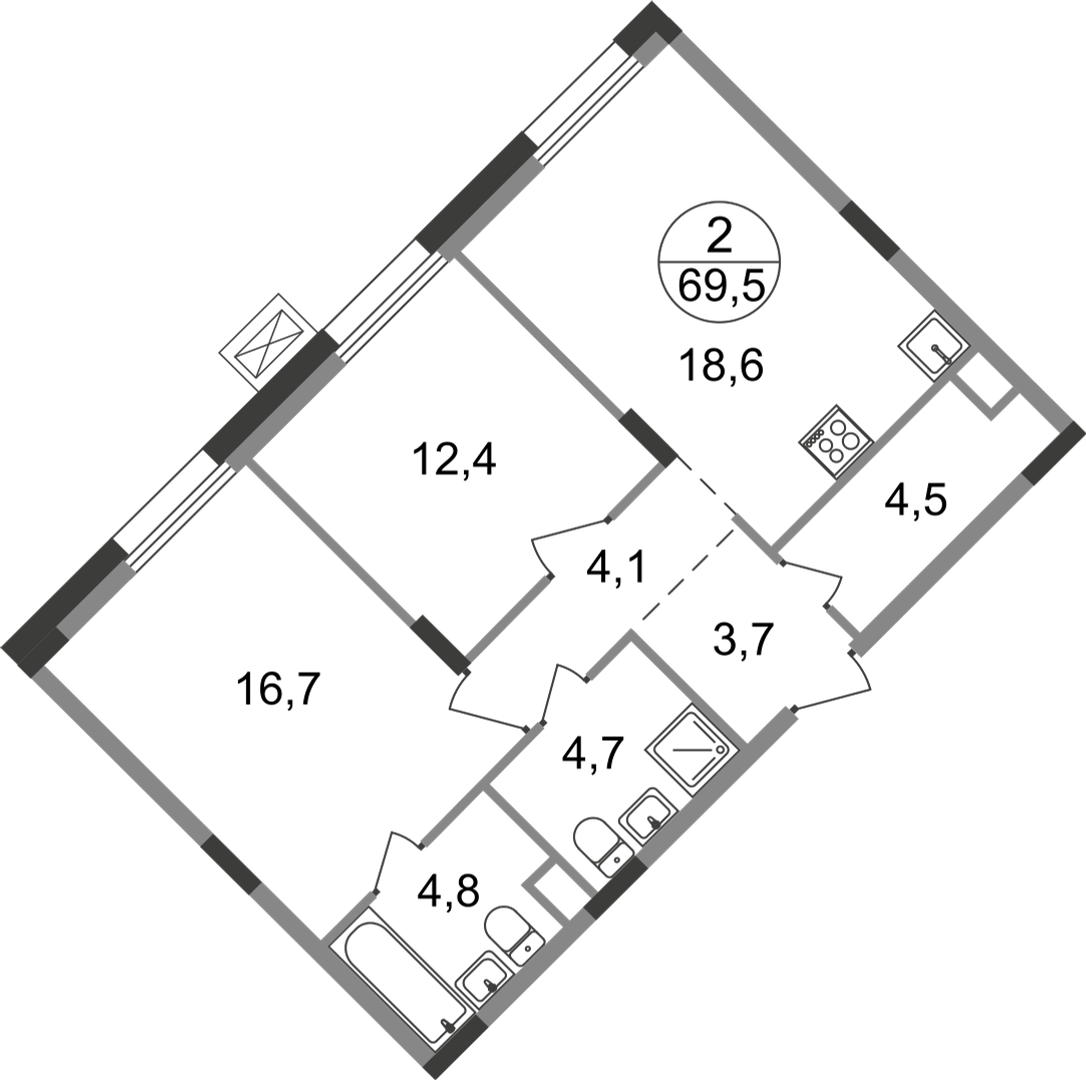 2-комн. кв., от 39.5 м², 8-17 этажи