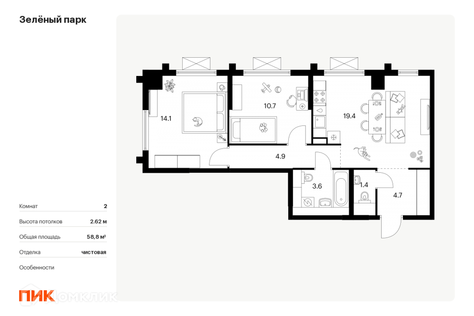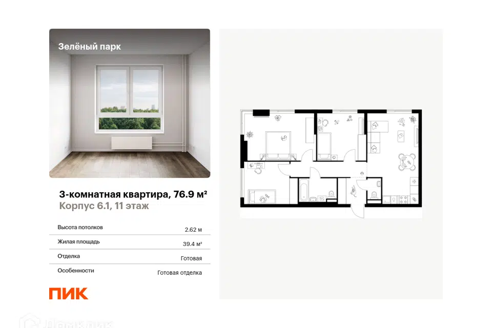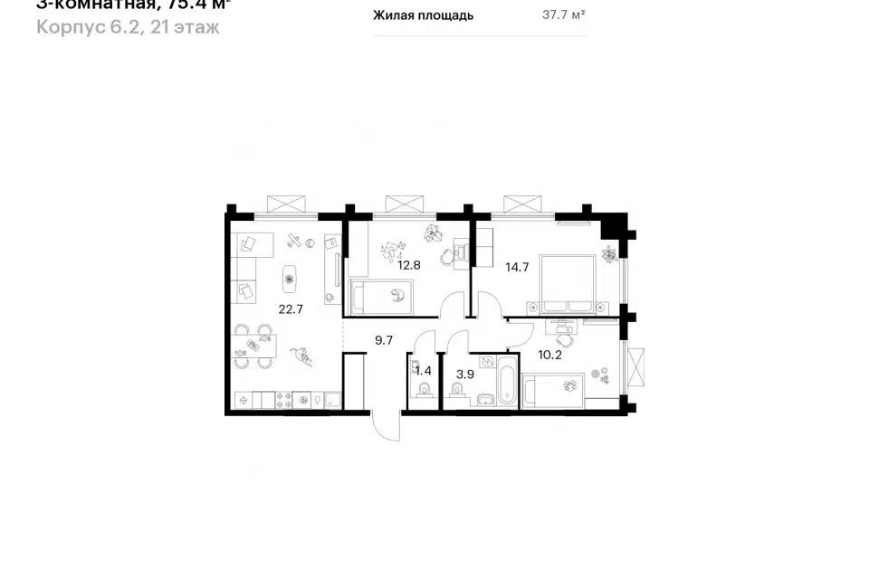 3-комн. кв., от 75.4 м², 8-25 этажи