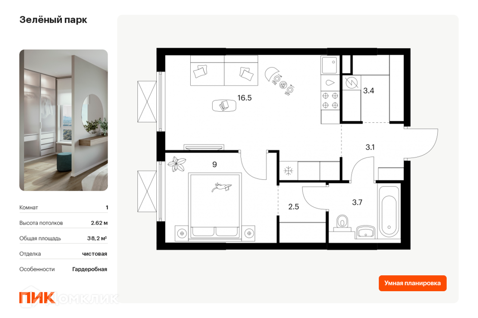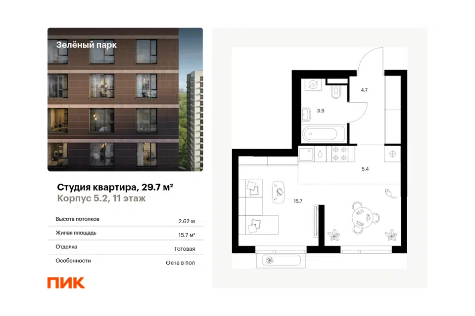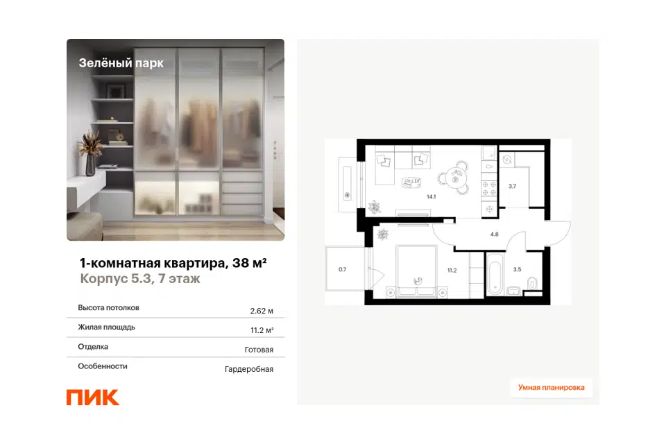 1-комн. кв., от 32.3 м², 1-28 этажи